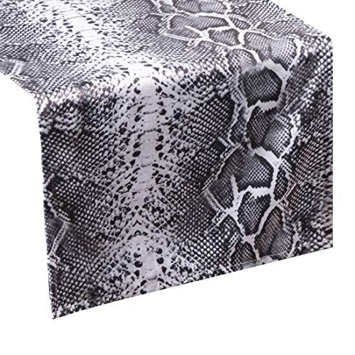 Eurofirany Bordsduk bordslöpare ormmönster ormskjul bordsdekoration bordsband bordsduk, vit svart, 35 x 140 cm