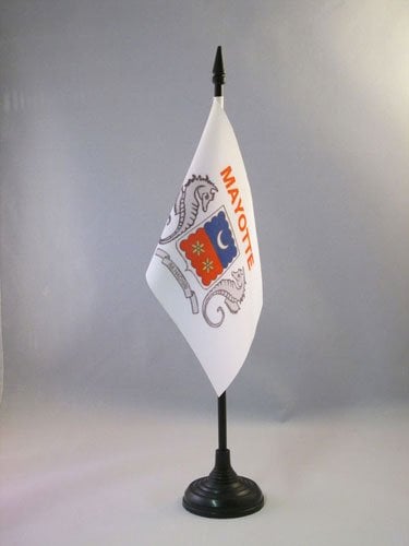 AZ FLAG – Mayotte bordsflagga 100% polyester 15 x 10 cm – mini skrivbordsflagga med 25 cm – 10 tum stolpe och svart plastbas
