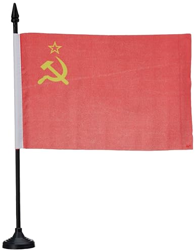 USSR Bordsflagga 5 tum x 8 tum – röd kommunist skrivbordsflagga 21 x 14 cm – svart plastpinne och bas – AZ FLAG