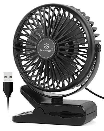 Dreamhigh® Mini USB-fläkt, 360° rotation, bärbar klämfläkt, 3 hastigheter, tyst bordsfläkt för skrivbordet, hemma och kontoret, svart (USB-driven)