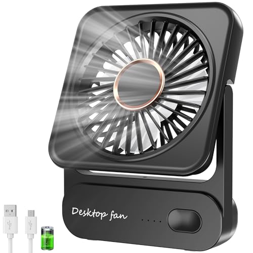 Lununux 900 ml bärbar fläkt, bordsfläkt, 3 hastigheter, för kontor, LED 7 färger, present