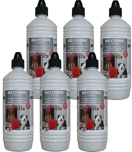 Moritz Bio etanol 6 x 1 000 ml I flytande bioetanol för etanol öppen spis, bordskamin, eldstad, öppen spis, utomhus, ugn