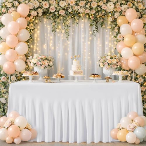 SUBLXPoten bordskjol vit bordskjol för rektangulära bord, rynkor med veckad volang bordskjol för fest bröllop födelsedag (vit, 4,3 m (H78 L427 cm)