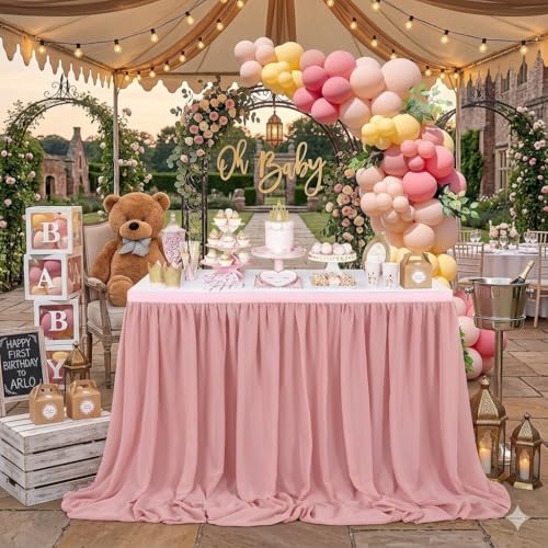 14 fot dammig ros chiffong bordskjol genomskinlig rektangel bordsduk för bröllop 1:a baby flicka födelsedagsfest möhippa dekoration