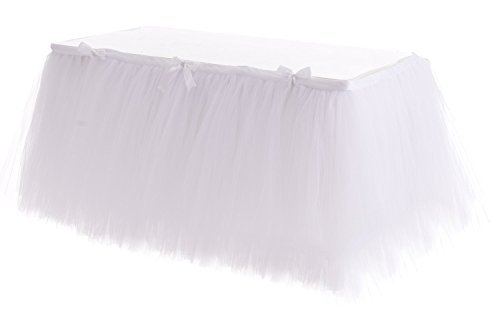 HBBMagic Vit bordskjol av tyll, 2,7 m, handgjord bordsskydd för fest, babyshower, bröllop, födelsedag, jul och heminredning