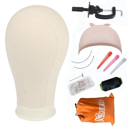 Xtrend 53 cm – 61 cm Poly Canvas Block Head Professionell skyltdocka Canvaströja Huvud för tillverkning, torkning, styling peruker med bordsklämma stativ 52 cm