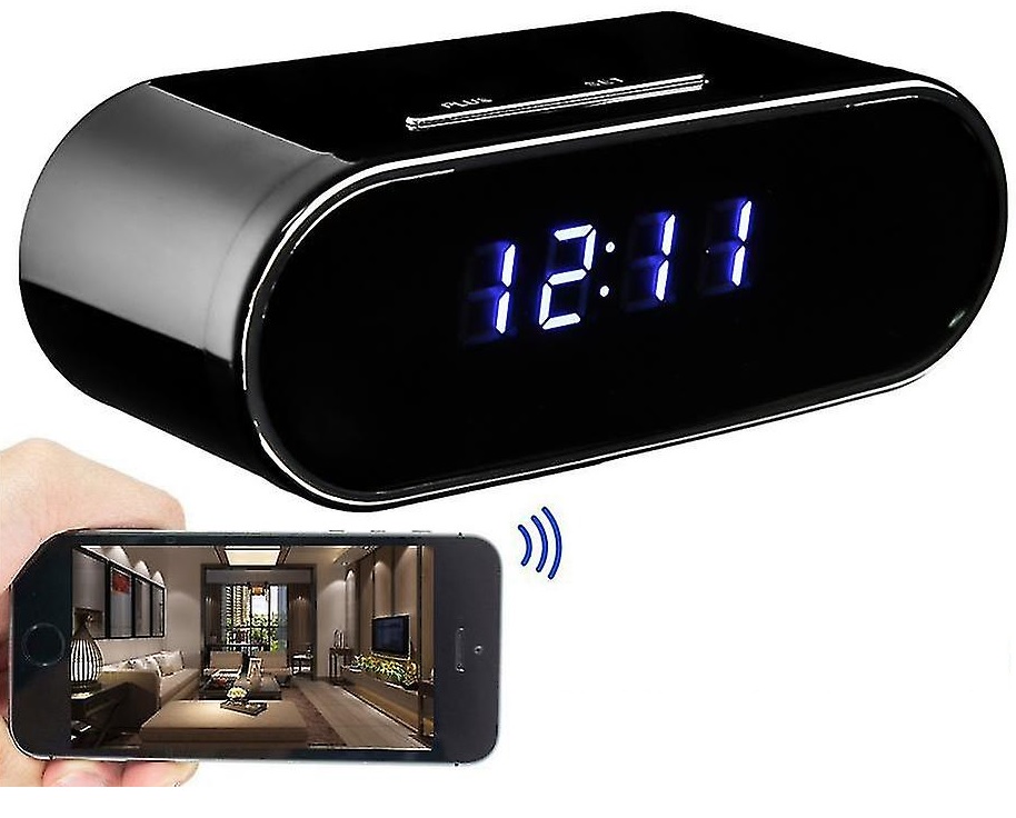 Digital Spionkamera i bordsklocka, 1080P FHD, Rörelselarm, IR Mörkersyn, WIFI/IP, MicroSD