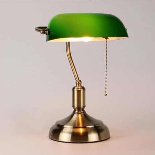 AoLa Skrivbordslampa Retro E27 Bordslampa Med DragströMbrytare Och Kabel Banker Lampa GröN GlasskäRm Kontorslampa MäSsing Klassisk Vintage Skrivbordslampa Antik Med SväNgbar 1 Flamma Metall