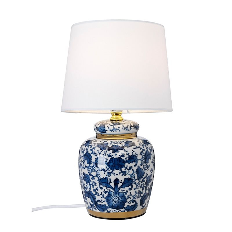 FIRVRE Glas Banker Bordslampor Skrivbordslampa LED Klassisk Retro Bordslampa Sänglampa Antik Metall Mässing Dragkedja Switch (Blå)
