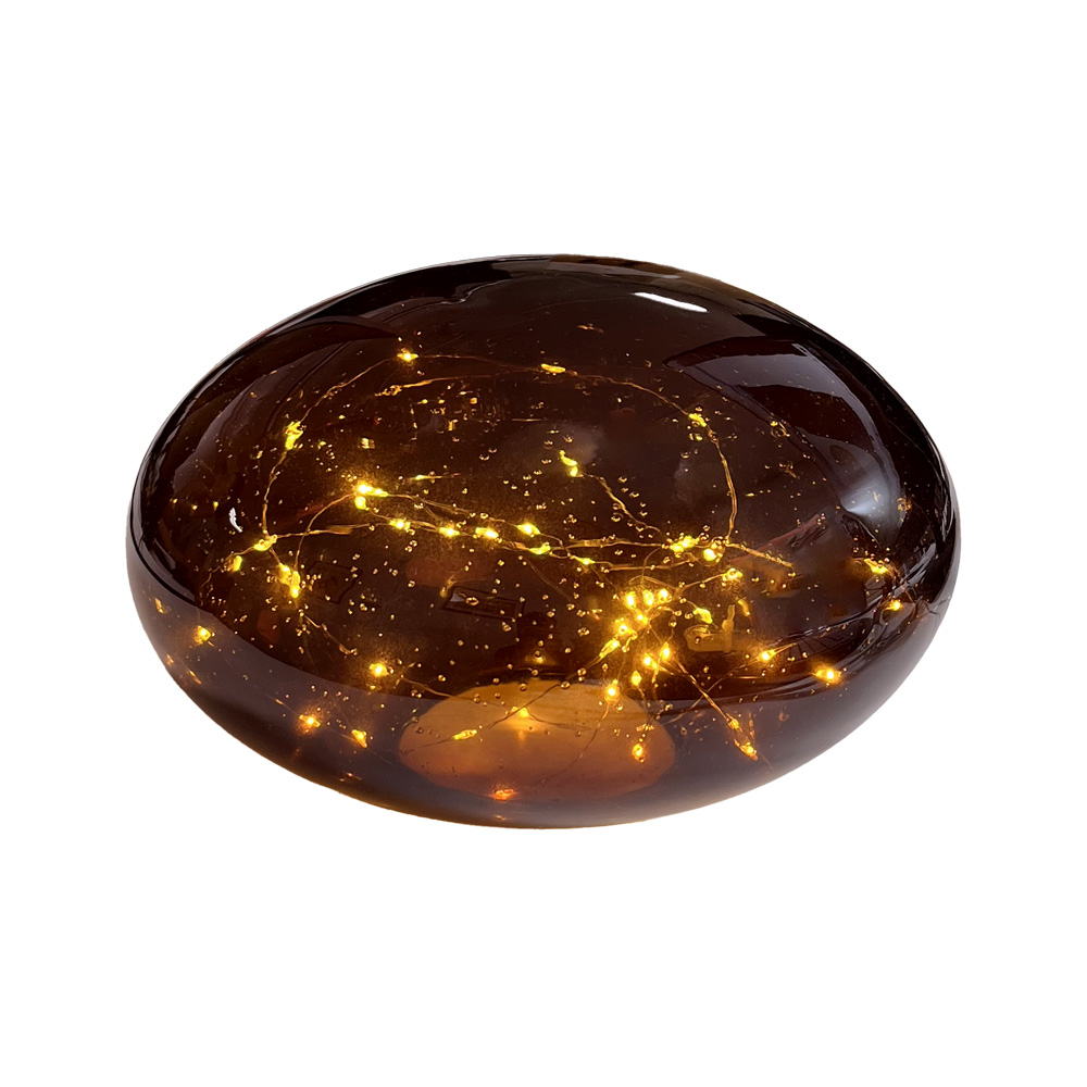 Wagner Life Sfärisk bärnstensfärgad LED-bordslampa BERNSTEIN, Creme / bärnsten, Vardagsrum / matsal, Sten