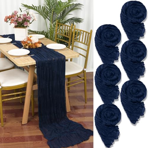 6 stycken dukar/bordslöpare marinblå blå, 55 x 300 cm mörkblå gasväv tyg boho bordslöpare ostduk cheesecloth bordslöpare bröllop bordsduk för bröllopsfest, brudfest, bordsdekoration