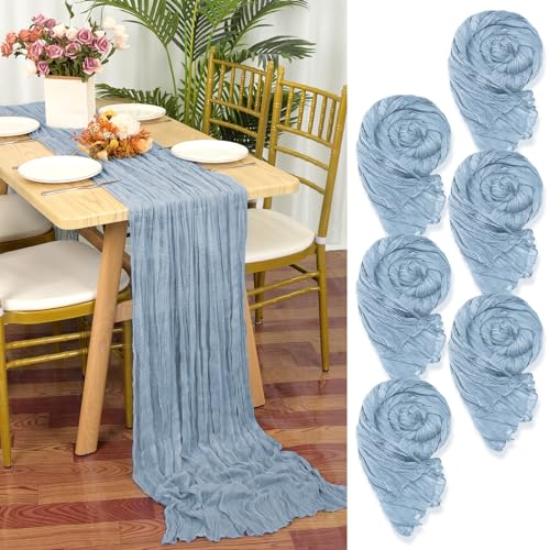 6 stycken duffeldukar bordslöpare blå, 55 x 300 cm dammig blå rustik gasväv tyg boho bordslöpare ostduk cheesecloth bordslöpare bröllop bordsduk för bröllopsfest, brudfest, bordsdekoration