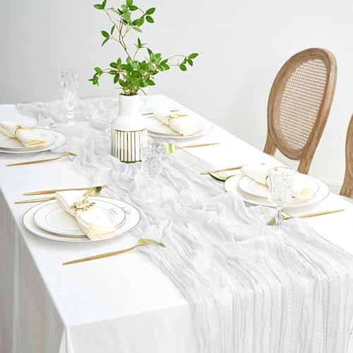 LOMOHOO Ostduk, bordslöpare, boho, gasväv, ostduk, bordslöpare, rustik, genomskinlig löpare, 40 cm lång för bröllop, brud, babyfest, födelsedagsfest, tårta, bordsdekoration (vit, 90 x 300 cm)