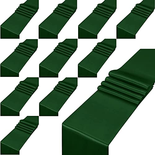 KAHEIGN 12 st bordslöpare i satin, 30 cm x 275 cm svart grön lång bröllop satin silke bordslöpare för bröllop bankett examen födelsedagsfest bordsstol dekoration
