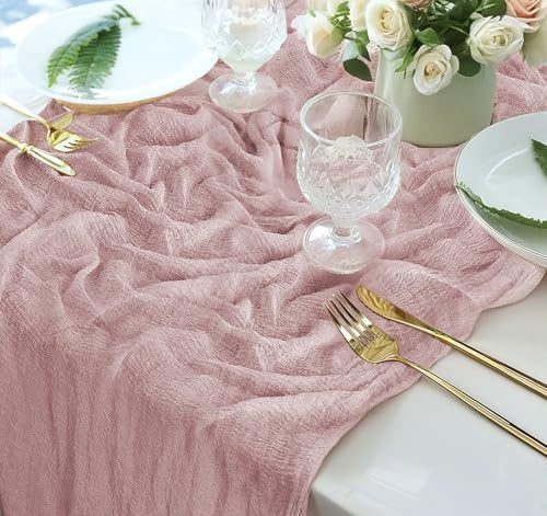 Anstore Rosa Cheesecloth Bordslöpare, 80 x 300 cm romantisk rodnad rosa bordslöpare, 2,98 m lång vårduk för evenemang, bröllop, semester, bankett, fest, födelsedag, middag