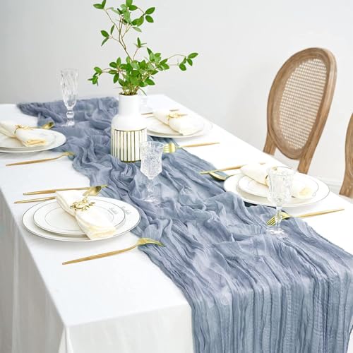 12-pack 35 cm ostduk bordslöpare 81 x 300 cm boho gasväv bordslöpare rustik ostduk lång bordslöpare romantisk bordslöpare för bröllop möhippa födelsedagsfest bordsdekor (dammigblå)