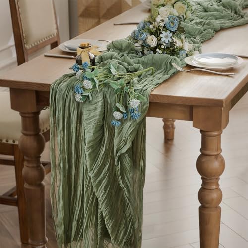 12-pack 3,5 m ostduk boho gasväv lång romantisk bordslöpare för bröllop möhippa födelsedagsfest dekor (dammig salviagrön)