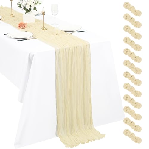 12-pack elfenbensfärgad ostduk bordslöpare, 30 cm boho-gasväv bordslöpare 51 × 300 cm rustik romantisk lång bordslöpare för bröllopsfest möhippa juldekoration