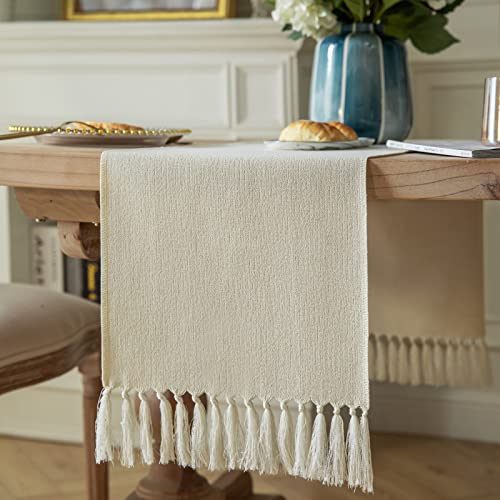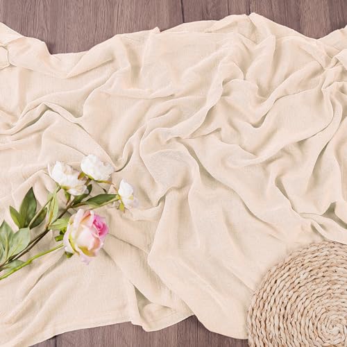12-pack beige ostduk bordslöpare, 30 cm boho-gasväv bordslöpare 51 × 300 cm rustik romantisk lång bordslöpare för bröllopsfest möhippa juldekoration