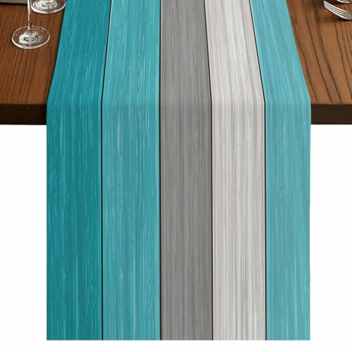 Vandarllin bondgård bomull linne bordslöpare byrålåda retro rustik ladugård trätextur ombre aqua blå grå halkfri rektangel inställningar dekoration för kök hem middag semester, 178 cm lång