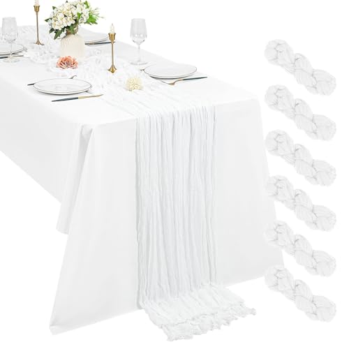 6-pack vit ostduk bordslöpare, 38 cm boho-gasväv 50 cm x 300 cm rustik romantisk lång för bröllopsfest möhippa Thanksgiving juldekoration