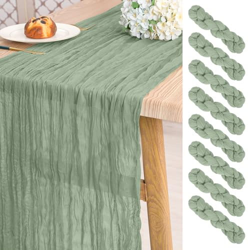 8-pack gasväv ostduk bordslöpare 3 m lång salvia grön rustik gasväv boho bröllop bordslöpare 50 x 300 cm för bröllop, möhippa, fest, bankettdekoration