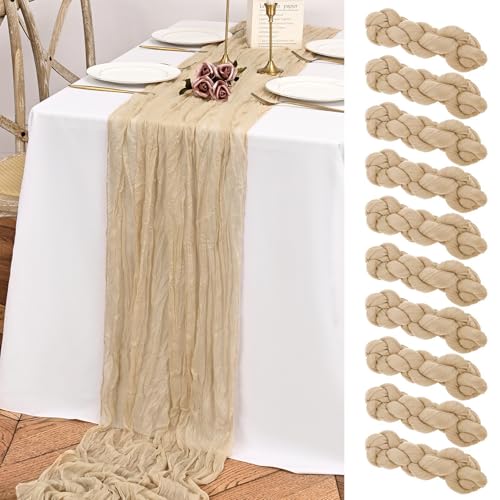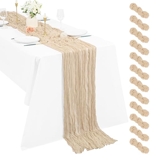 AUAUY ostduk bordslöpare, 10 fot bohemisk gasväv bordslöpare, lång ostduk bordslöpare för babyshower dekoration, bröllop, semester, sommarfest (beige)
