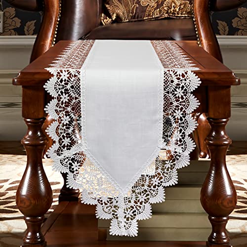 FRAGRANCOSY Vit bordslöpare 91 cm lång vintage utsökt makramé med blommönster broderad byrålhalsduk (36 x 86 tum)
