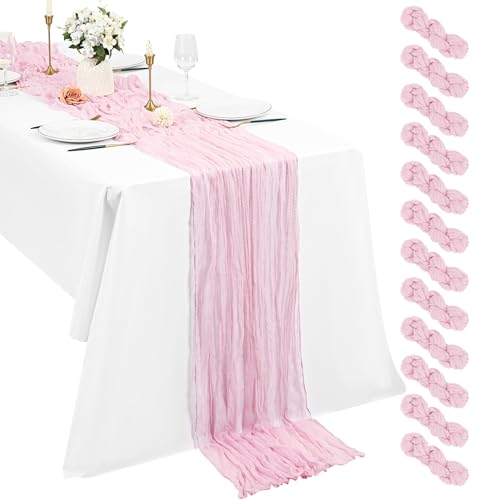 12-pack ljusrosa ostduk bordslöpare 30 cm boho gasväv bordslöpare 50 cm rustik romantisk lång bordslöpare för bröllopsfest möhippa juldekoration