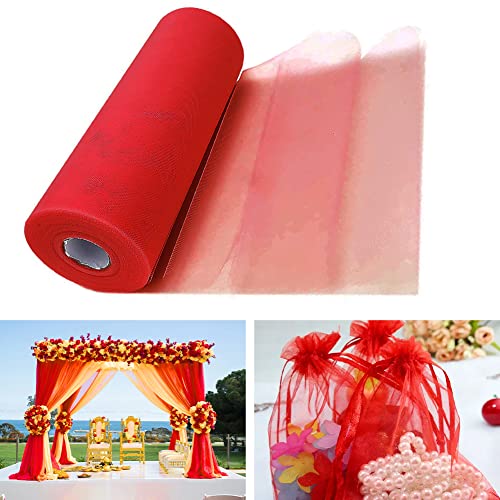 Tyllrulle 30 cm x 91,4 m, bröllopstyll, bordslöpare, dekoration, 91,4 m (100 yards), tyllband på rulle, vitt tylltyg för pyssel, tyllkjol, bröllop, bordslöpare, dekoration (röd)