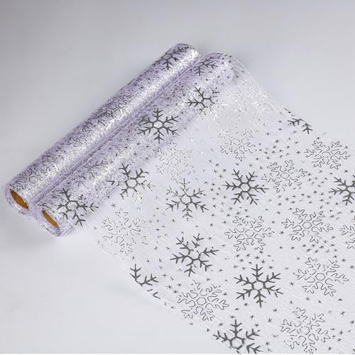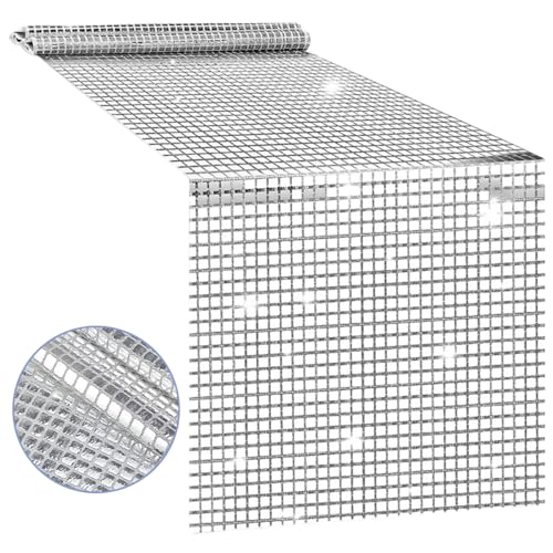 Snowkingdom Silverbordslöpare, paljettglitterfolie metallisk silvernät bordslöpare rulle 30 cm x 49 m, silver bordsdekorationer för bröllop, födelsedagsfest, jul, baby shower (1 st)