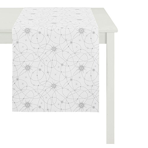 APELT 3009 48 x 140 88 bordslöpare, polyester, silver/vit