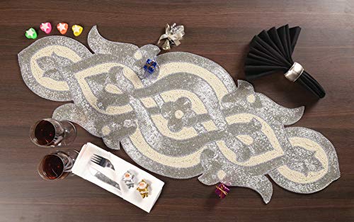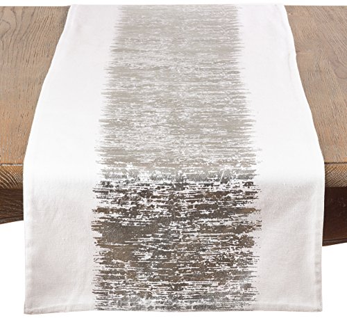 SARO LIFESTYLE Silvermetallisk bandad design bordslöpare-16 x 72 avlång, 100 % vävd bomull, 40 cm x 183 cm