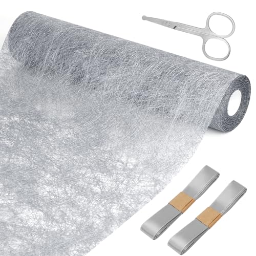 Anstore Fleece bordslöpare återanvändbar dekorativt tyg bordsband silver 23 cm x 30 m bordsdekoration silverbröllop, bordslöpare silver för bröllop, nattvardsgång, dop och alla festligheter