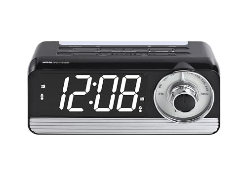 Silva Schneider TR 1970 D – retro bordsradio med FM, stor LED-display (dimbar), dubbellarm, snooze- och insomningstimer, nattljus, analog sändarinställning, USB-laddningsport och stödbatteri –