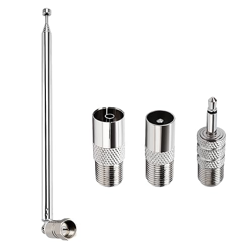 VooGenzek 75cm 7-Sektions Teleskopisk DAB Radioantenn, Antik FM Antenn Inomhusantenn 75 Ohm, F-typ Hankontakt med 3 Adaptrar, för Bordsradio, HiFi AV Stereomottagare Minisystem