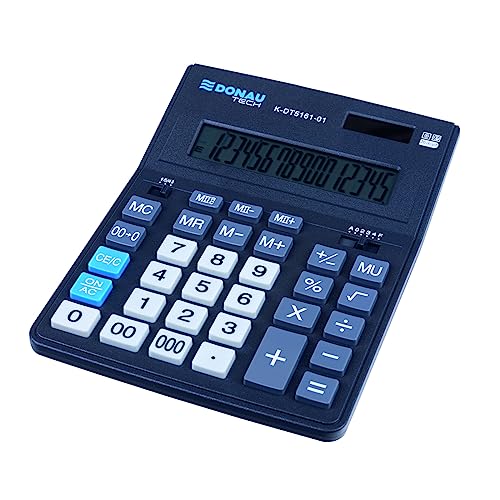 Bordsräknare Donau TECH Office K-DT5161-01/16-siffrig visning/201 x 155 x 35 mm/färg: svart/räknare Dual-Power Solar – batteridrift, kompakt design/5 års garanti