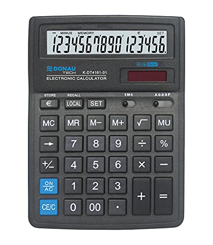 Bordsräknare DONAU TECH/K-DT4161-01 16-siffrig rotfunktion/199x153x31 mm/Färg: Svart/dator med 16-siffrig display/Dual Power Solar – batteridriven/kompakt design/5 års garanti