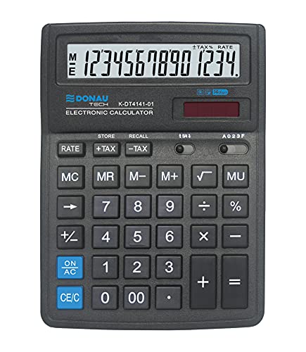 Bordsräknare DONAU TECH/K-DT4141-01 14-siffrig rotfunktion/199 x 153 x 31 mm/färg: svart/dator med 14-siffrig display/Dual-Power Solar – batteridrift, kompakt design/5 års garanti