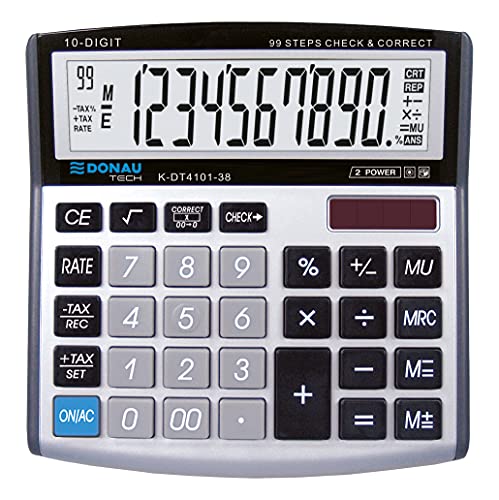 Bordsräknare DONAU TECH/K-DT4101-38 10-siffrig rotfunktion/136 x 134 x 28 mm/färg: Silver/dator med 10-siffrig display/Dual-Power Solar – batteridrift, kompakt design/5 års garanti
