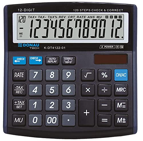 Bordsräknare Donau TECH Office K-DT5122-01/12-siffrig visning/201 x 155 x 35 mm/färg: svart/räknare Dual-Power Solar – batteridrift, kompakt design/5 års garanti