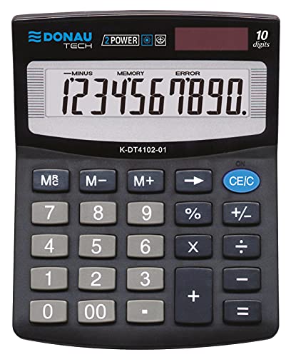 Bordsräknare Donau TECH Office K-DT5101-01/10-siffrig visning/137 x 101 x 30 mm/färg: svart/miniräknare Dual-Power Solar – batteridrift/kompakt design/5 års garanti