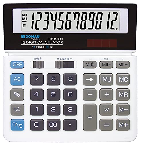 Bordsräknare DONAU TECH/K-DT4126-09 12-siffrig rotfunktion/156 x 152 x 28 mm/färg: Vit/dator med 12-siffrig display/Dual-Power Sol-batteridrift, kompakt design/5 års garanti