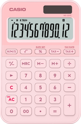 CASIO Bordsräknare MS-20UC-RD, 12-siffrig i trendiga färger, kontrollberäkning, tidsomvandling, sol-/batteridrift, 2,3 x 10,5 x 14,95 cm