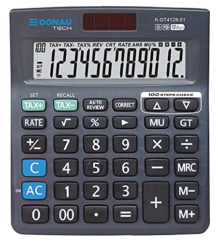 Bordsräknare DONAU TECH/K-DT4124-01 12-siffrig rotfunktion/125x100x27 mm/färg: Svart/dator med 12-siffrig display/Dual Power Solar – batteridriven/kompakt design/5 års garanti