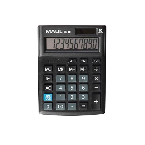 Maul Miniräknare Mc10, Stor, Vinklad Display, 10 Platser, Professionell Bordsräknare För Kontor, Hem, Skola, Soldriven, inklusive Batteri, 13,7 x 10,3 cm, Svart
