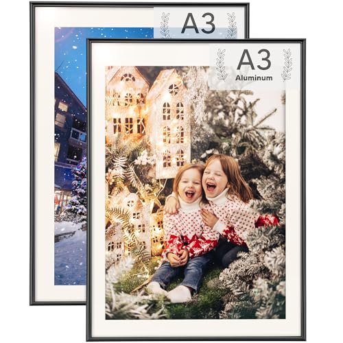 Rieeyrslza 2 Stycken Fotoramar av Aluminium Arkivhållare 29, 7x42cm A3 Ramvägg Fotoram för Bordsram Fotoram för Affisch på Väggen Lämplig för Hemskolor Gallerier(Svart)