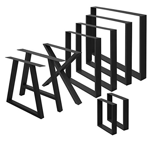 ECD Germany 2 stycken bordsben - 40 x 43 cm - pulverlackerat stål - svart - industriell design - bordsram set bordslöpare bordsfötter bordsunderlag