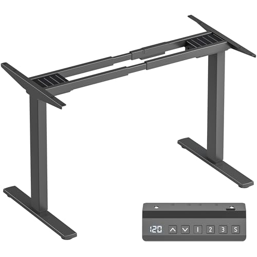 Wiltec Höjdjusterbart Skrivbord, Tvåmotorigt, Bordsram för Bordsskivor, med Kollisionsskydd, Minnesfunktion och Påminnelse om Positionsbyte
