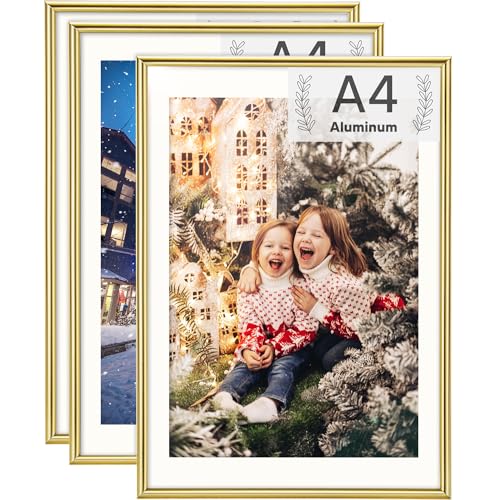 Rieeyrslza 3 Stycken Fotoramar av Aluminium Arkivhållare 21x29, 7cm A4 Ramvägg Fotoram för Bordsram Fotoram för Affisch på Väggen Lämplig för Hemskolor Gallerier(Guld)